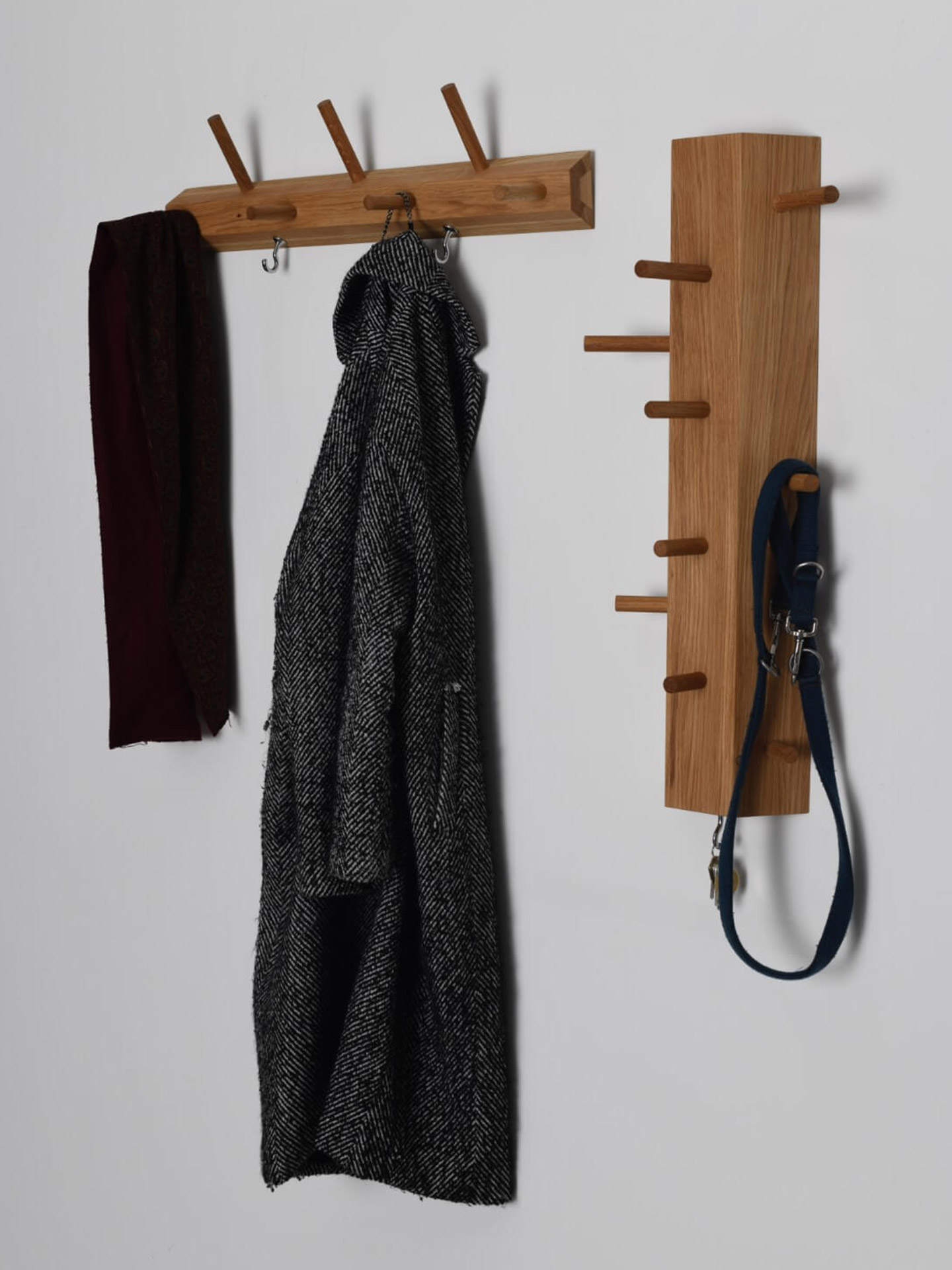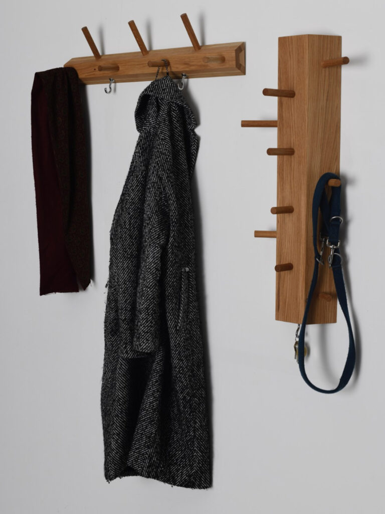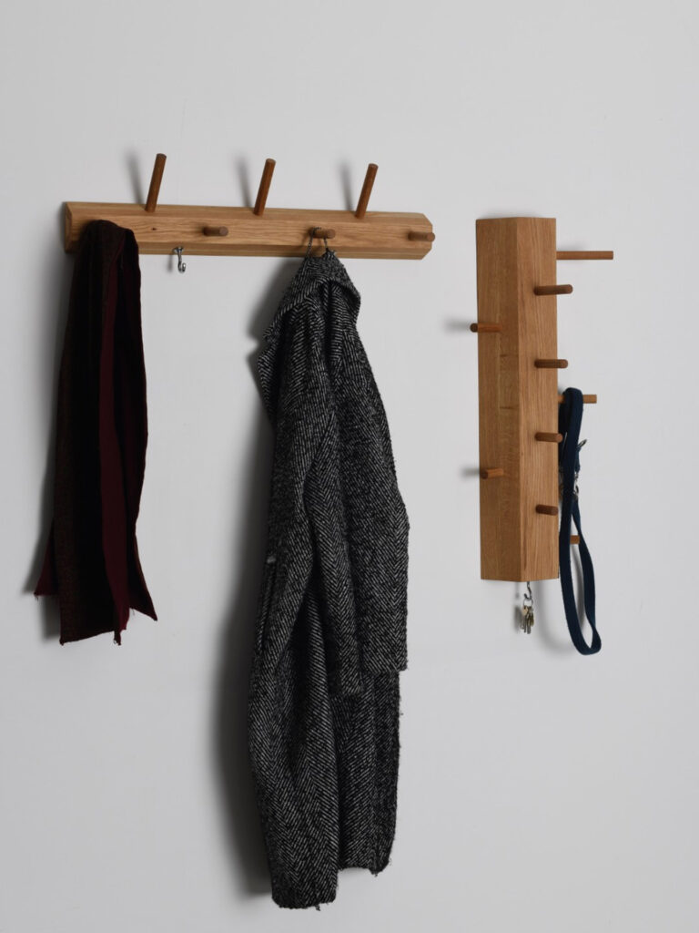 Die Rundstäbe sind 1 cm lang, wenn sie nach oben gehen, so dass die Mäntel etwas mehr Platz haben, wenn sie übereinander liegen